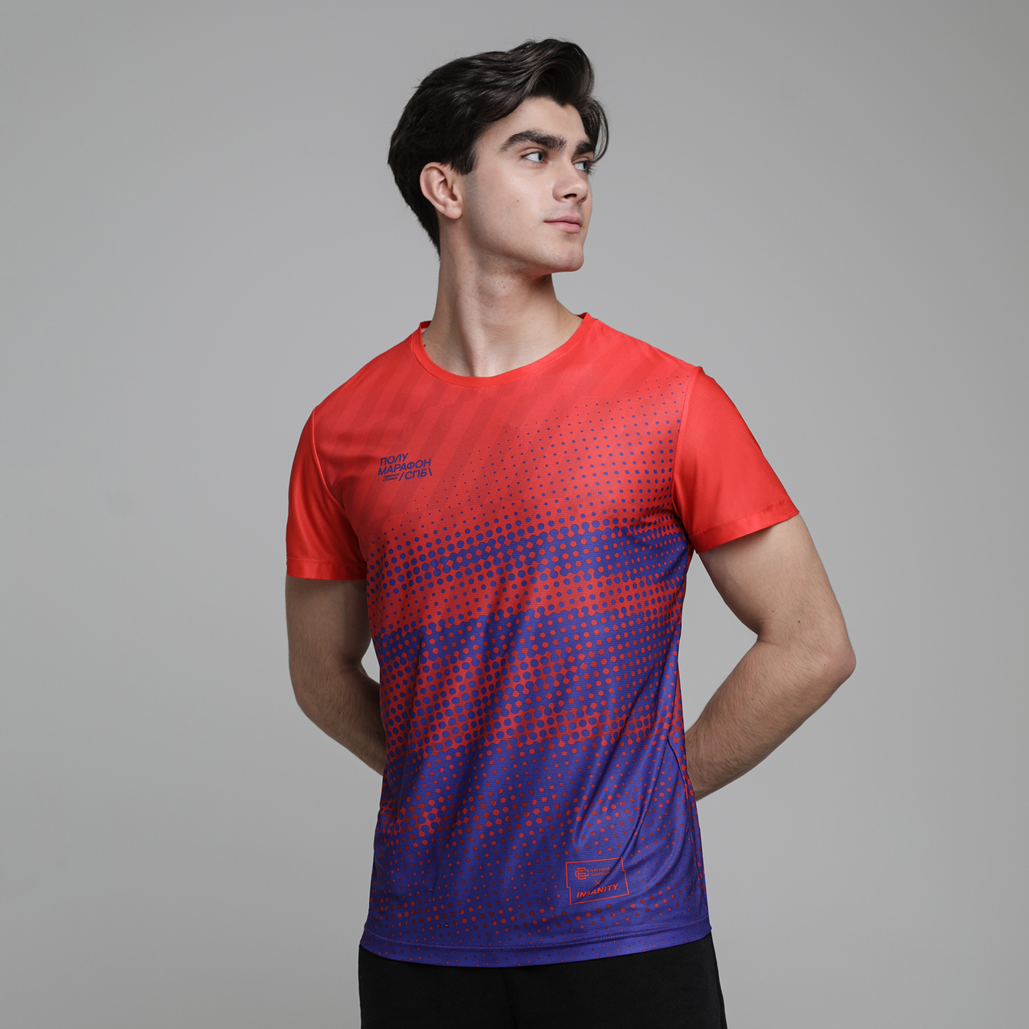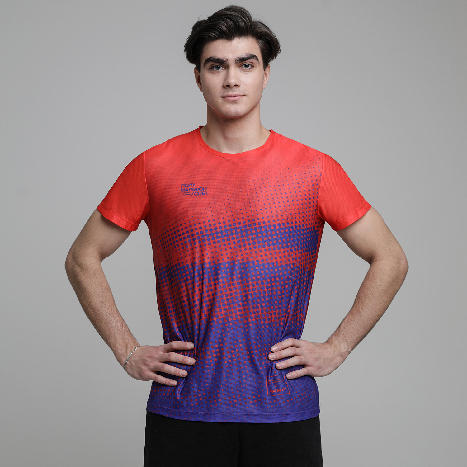 Футболка участника СПБ полумарафона «Северная столица». Модель свободного кроя со светоотражающими элементами и тонкими плоскими швами. Подойдёт для тренировок в тёплую погоду.
